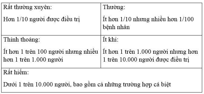 Đánh giá các tác dụng không mong muốn, dựa trên thông tin tần suất sau: